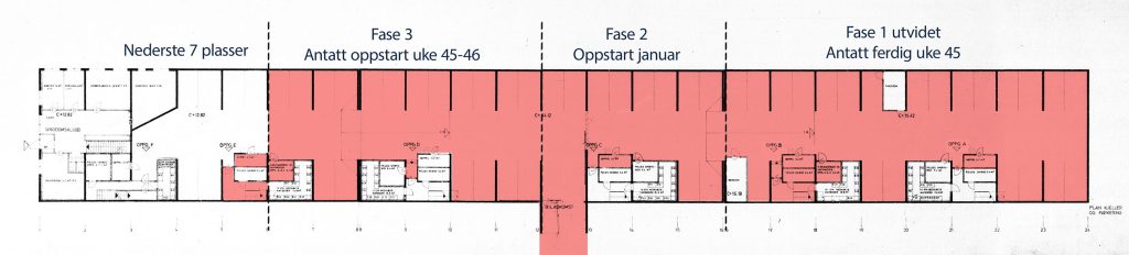 Mens arbeid i fase 3 pågår vil det dessverre ikke bli mulig å kjøre ut eller inn for de nederste 7 P-plassene i garasjen, i hvert fall ikke de første 3 ukene. Dette fordi det er så omfattende skader i nederste del av fase 3 at det ikke er mulig å sikre trygg kjøring i området. Dere som bruker disse P-plassene må enten la bilen stå til nærmere 20. desember, eller parkere ute. Se epost med tilbud om parkering i Vulkan P-hus sendt alle andelseiere 4. september.